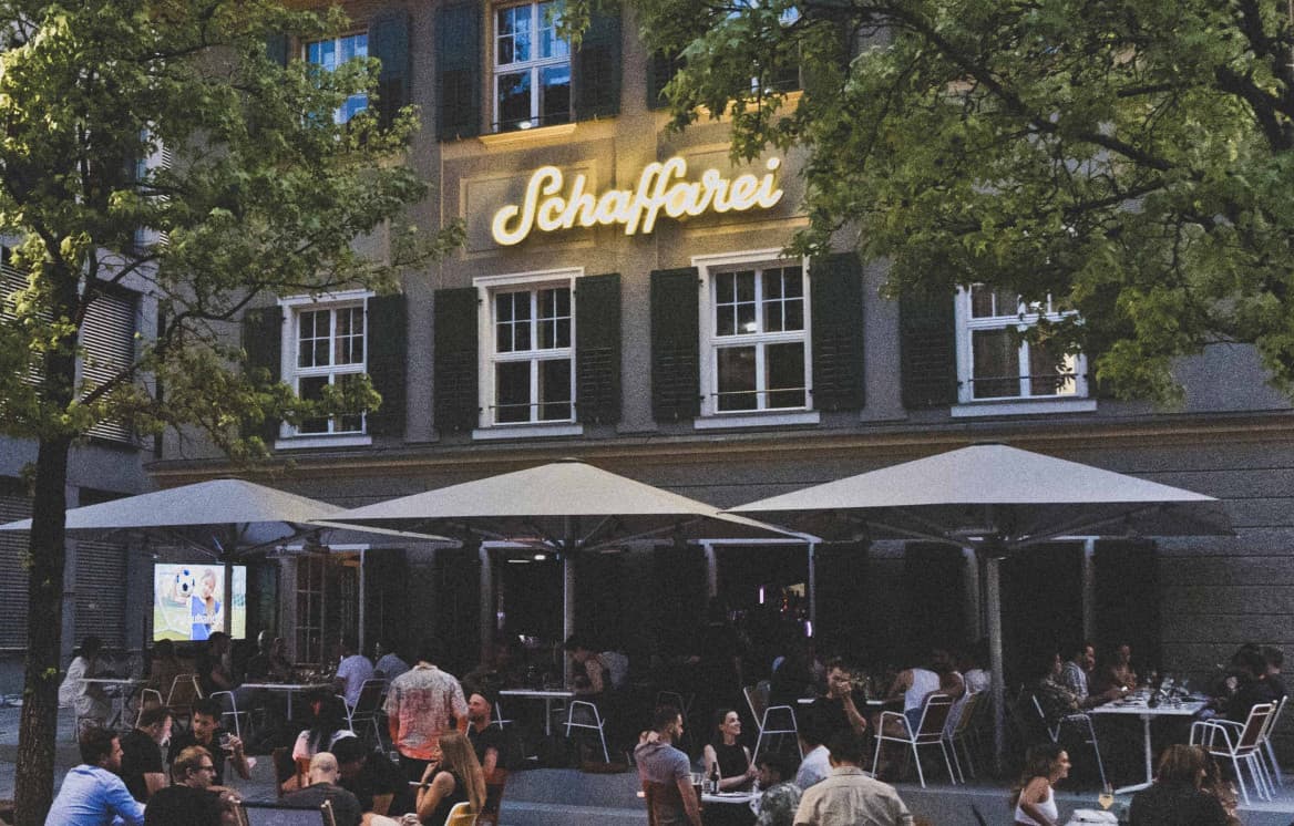 In Vorarlberg wird gerne und viel übers Arbeiten geredet. »Schaffa, schaffa, Hüsle baua« ist das Sprichwort, das den Kindern in die Wiege gelegt wird. Aber nach dem Schaffa kommt auch bei den Vorarlberger Menschen das Vergnügen. Dann trifft man sich im Innenhof der »Schaffarei«, auf der »Kuche und Klub« Terrasse auf eine Portion Pommes und kühle Drinks. Für Karaoke-Fans und Tanzmäuse geht’s anschließend eine Etage tiefer in den Klub.